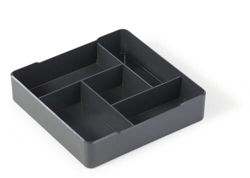 Small waste bin, Coffee Point bin, plastic, anthracite color. Klein afvalbakje voor gebruik op vergadertafels of in kitchenettes. Dit handige accessoire is geschikt om te gebruiken in combinatie met het coffee point assortiment. Ideaal om klein afval zoals lege melkcups, suikerzakjes, theezakjes en roerstokjes in weg te werpen.